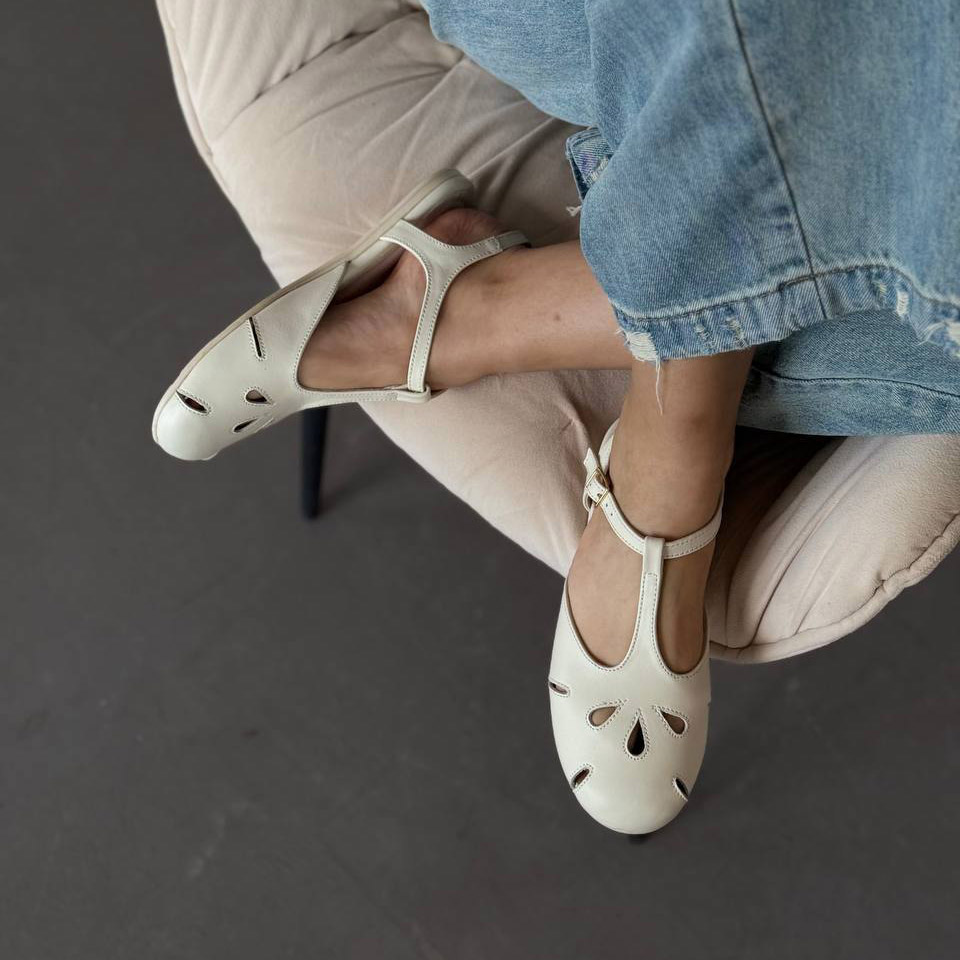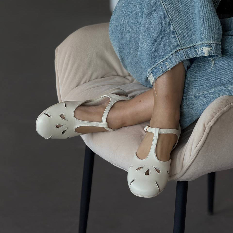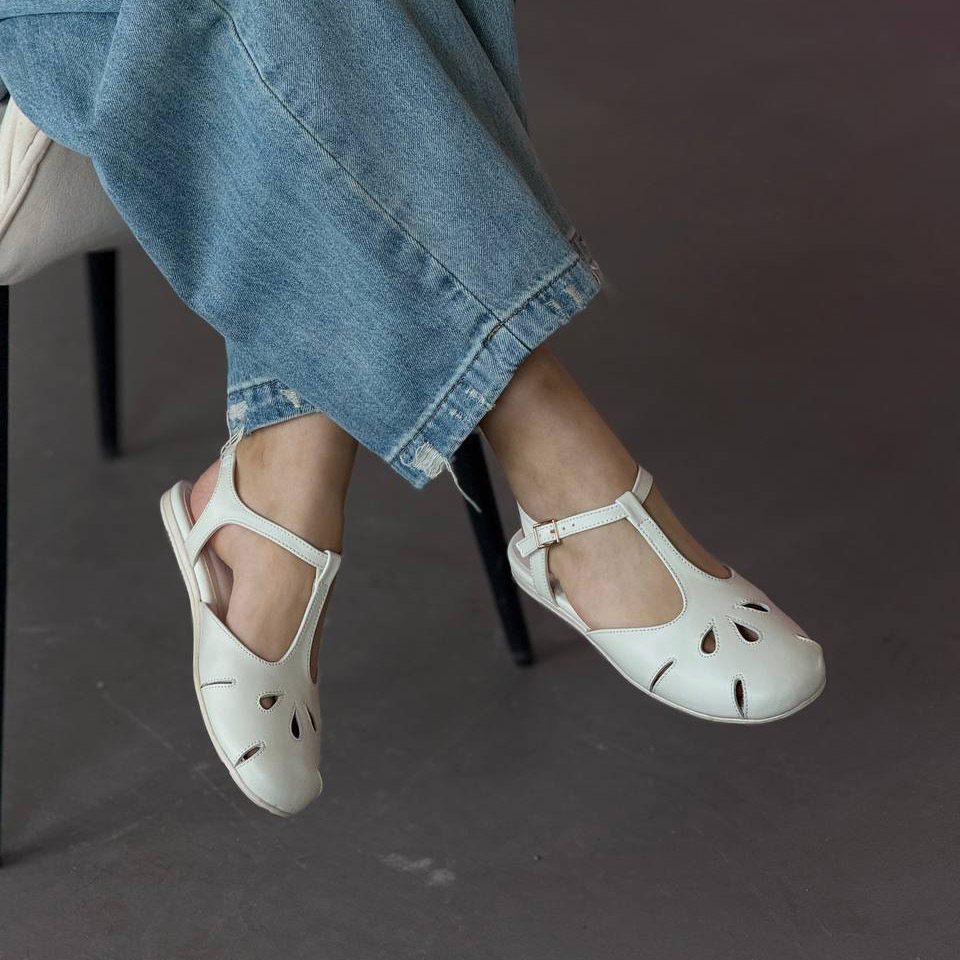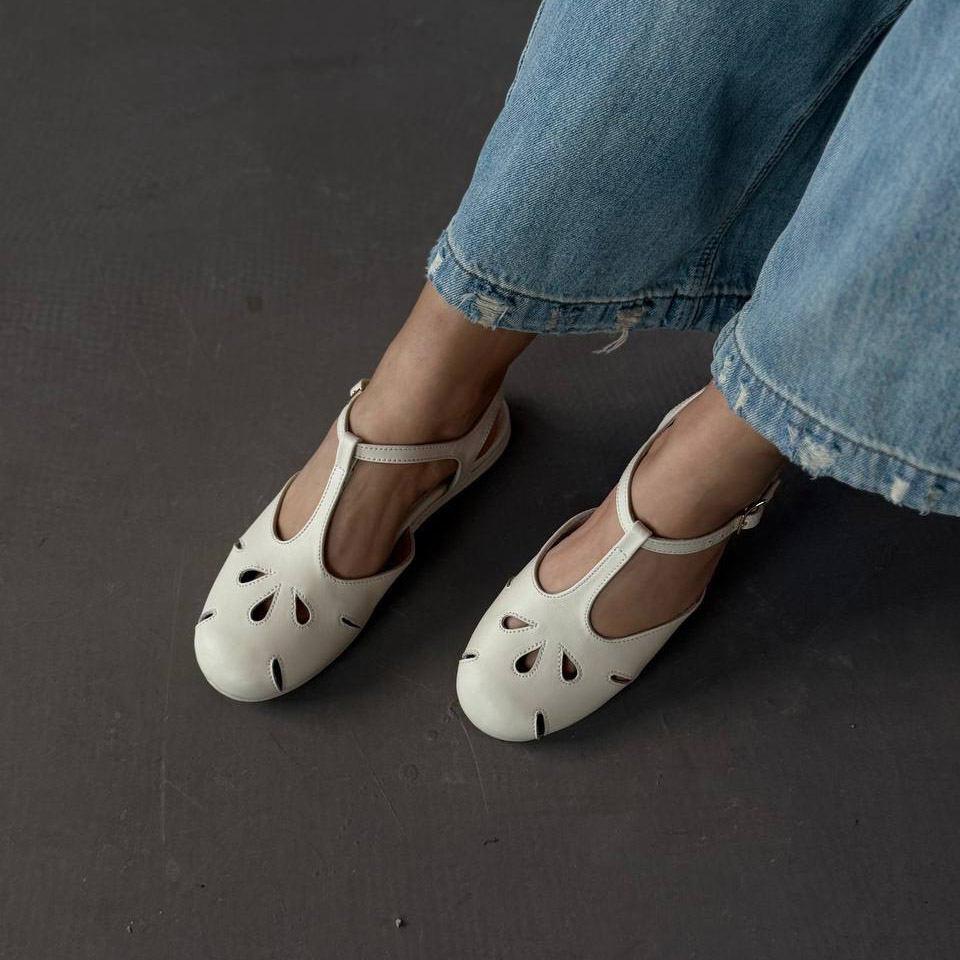 Легкі жіночі балетки з перфорацією та ремінцем. Натуральна шкіра, зручна посадка та стильний дизайн для щоденного носіння.