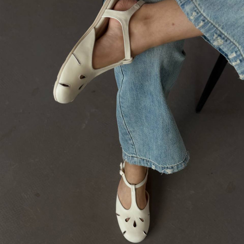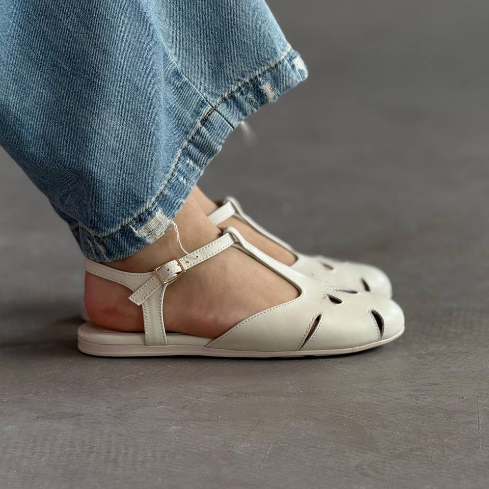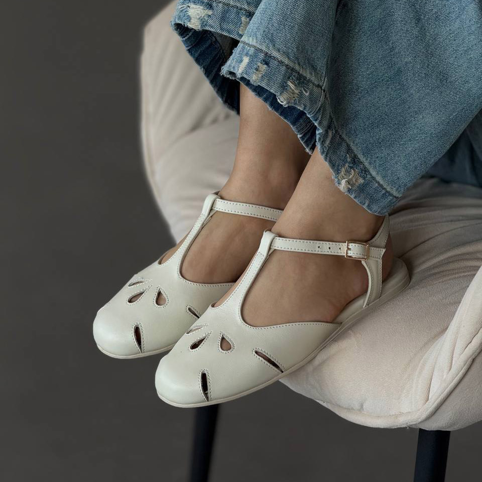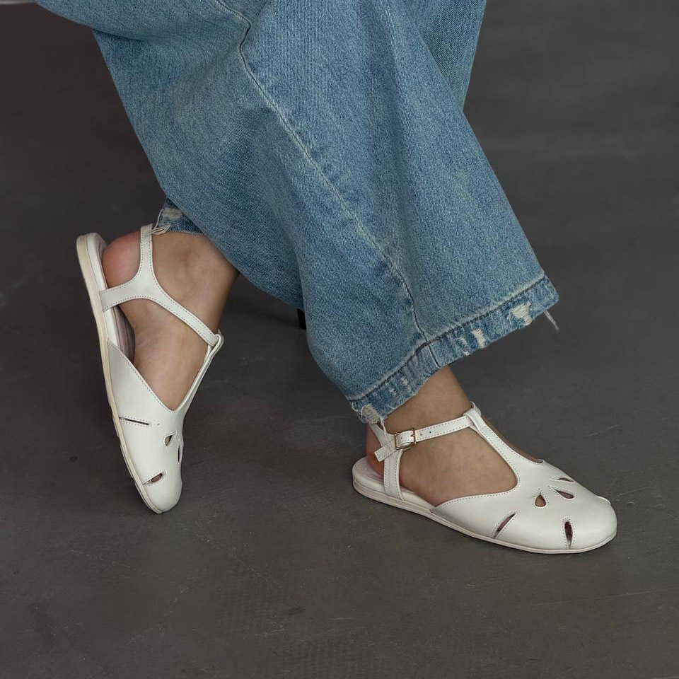 Легкі жіночі балетки з перфорацією та ремінцем. Натуральна шкіра, зручна посадка та стильний дизайн для щоденного носіння.