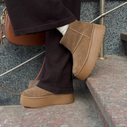 Модель виконана з натуральної шкіри жовтого кольору, фіксується пряжкою. Висота каблука 9 см і 2 см платформа. Усередині шкіряної підкладки